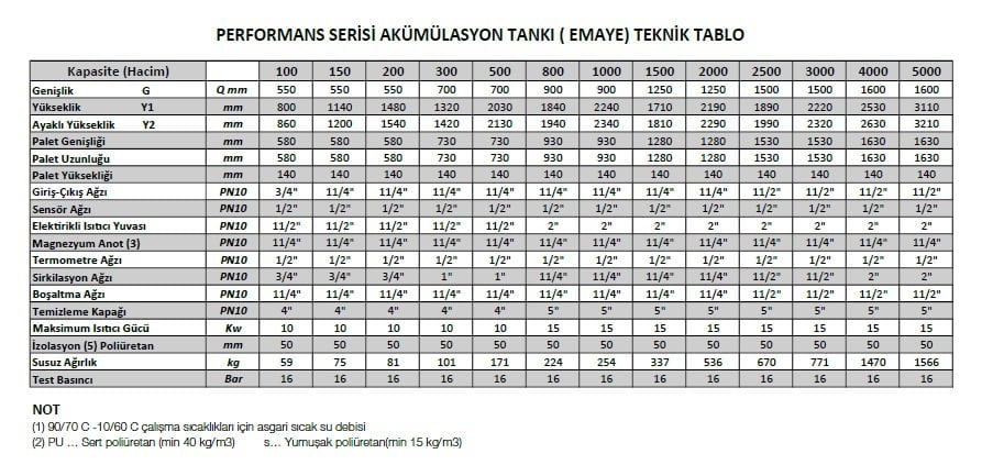 Performans Serisi, tankın zorlu çalışma koşullarında dahi yüksek verimlilikle ve uzun ömürlü olarak çalışmasını sağlayacak şekilde birinci sınıf malzemelerden üretildiğini gösterir.