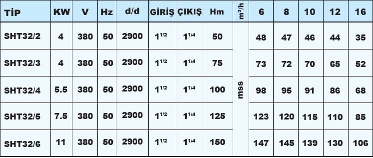 SUMAK SHT32/2 380v 5Hp Döküm Gövde Düşey Milli Kademeli Pompa