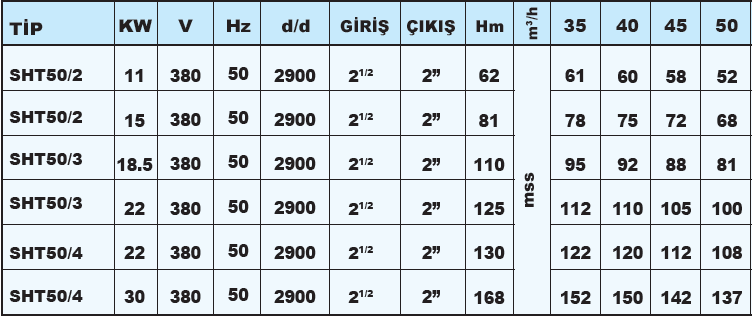 | Pompa Tipi | Düşey Milli, Çok Kademeli |