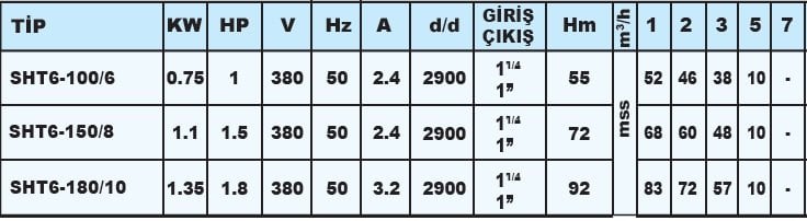 SUMAK SHT6-180/10 380v 1.8 Hp Paslanmaz Gövde Düşey Milli Kademeli Pompa