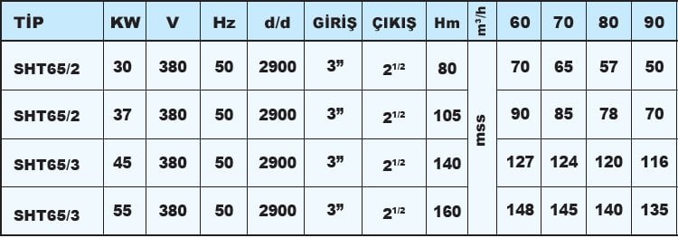 | Pompa Tipi | Düşey Milli, Çok Kademeli |