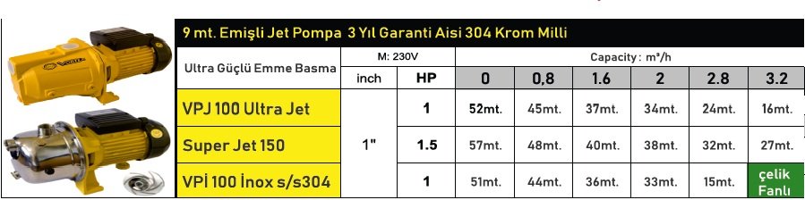 VORTEX Super Jet 150 1.5 HP 220V Döküm Gövdeli Jet Pompa