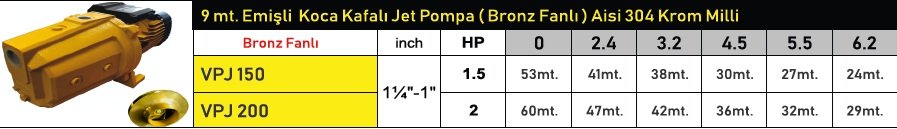 VPJ 200 bir Jet Pompa olduğu için, suyu ancak yer seviyesinden maksimum derinlikten emebilir. Bu pompayı derinliği aşan kuyular için kullanmanız mümkün değildir. Daha derin kuyular için Dalgıç Pompa Motorları (örneğin daha önce sorduğunuz VRM serisi) tercih edilmelidir.